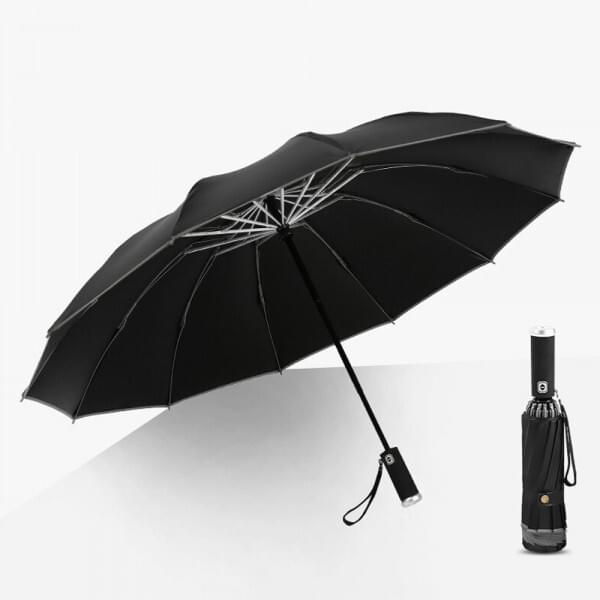Now it’s rainy season in my area and I’m glad I bought this nice umbrella. The flashlight keeps me safe to walk in the rainy night. I also like the auto open and close feature and its compact size. I chose the red one and I like it very much. Now I always keep it in my handbag.